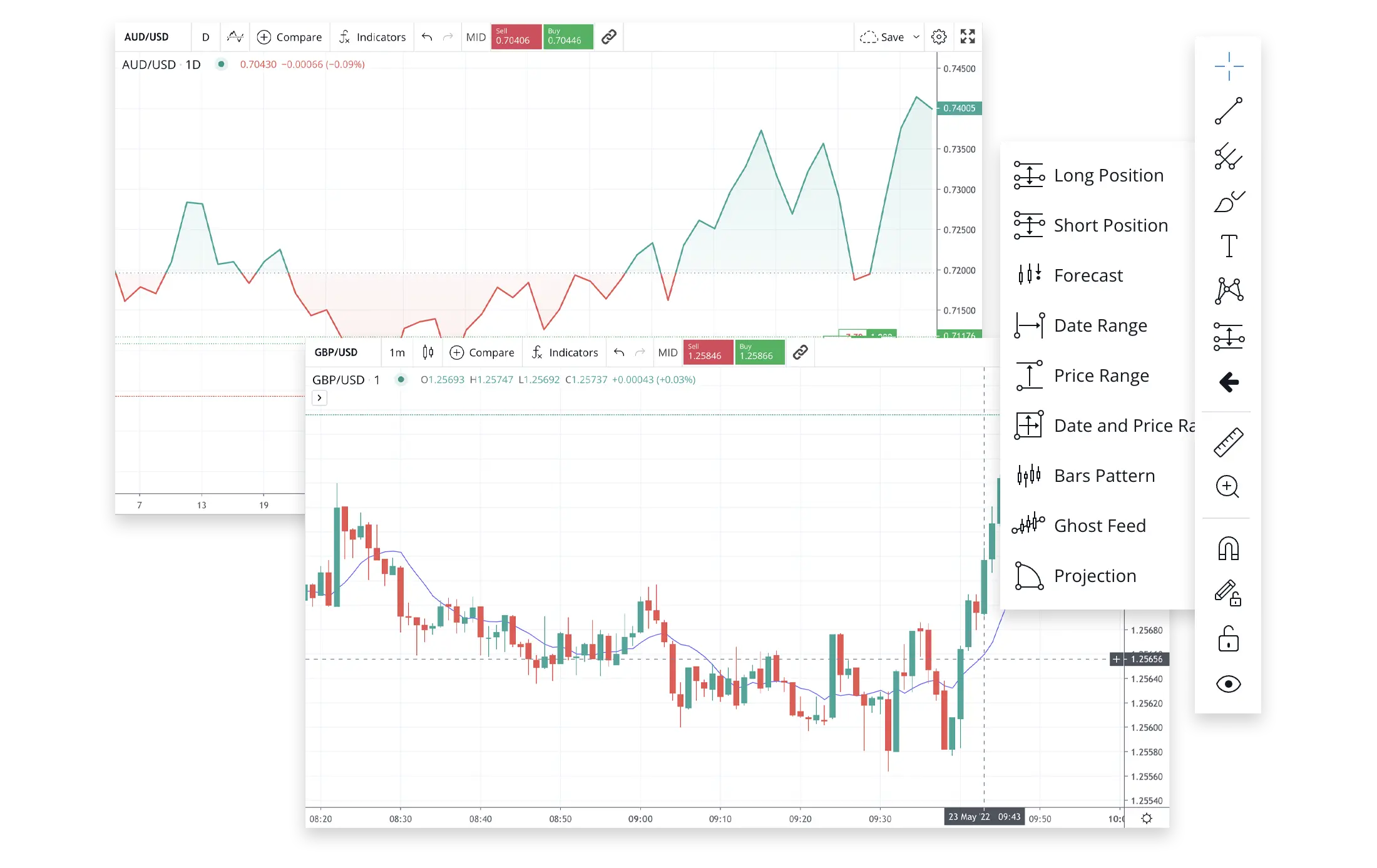 Charting tools help you analyze a market using the charts within a trading platform. Tools range from simple trend lines to Fibonacci retracements and beyond, and can help traders make sense of price action and inform future decisions.